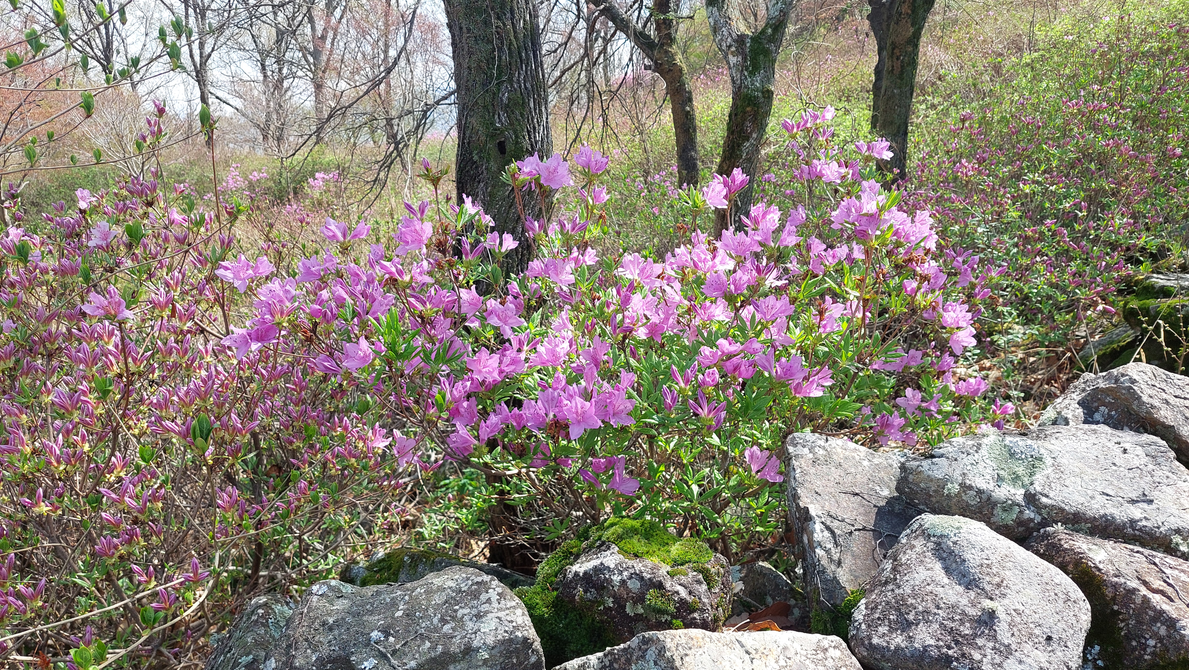 짧지만 그래도 능선길이라 가벼운 오르내림이 이어집니다. 산길엔 벌써 진달래가 뒷물입니다.